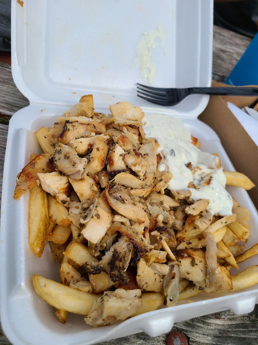 This is our favorite gyro place! Is THE BEST. We wait for the season to start to come and enjoy amazing food, amazing staff (George is always amazing!) and amazing views! Our 4 year old is fan of the chicken gyro with rice. Fries are amazing and the falafel is incredible!
